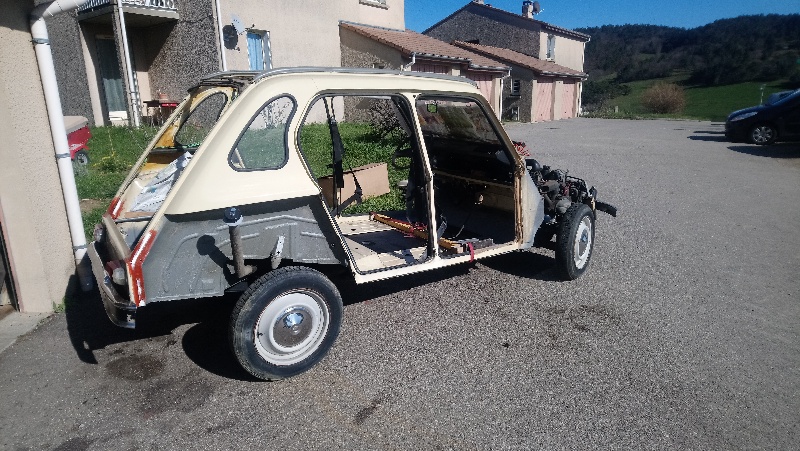 Provisoire car pour repeindre la caisse, elle sera enlevée du châssis et suspendue dans le garage. Et il me faudra rajouter les mousses et replacer les écrou-cages pour la fixation définitive de celle-ci sur le châssis.