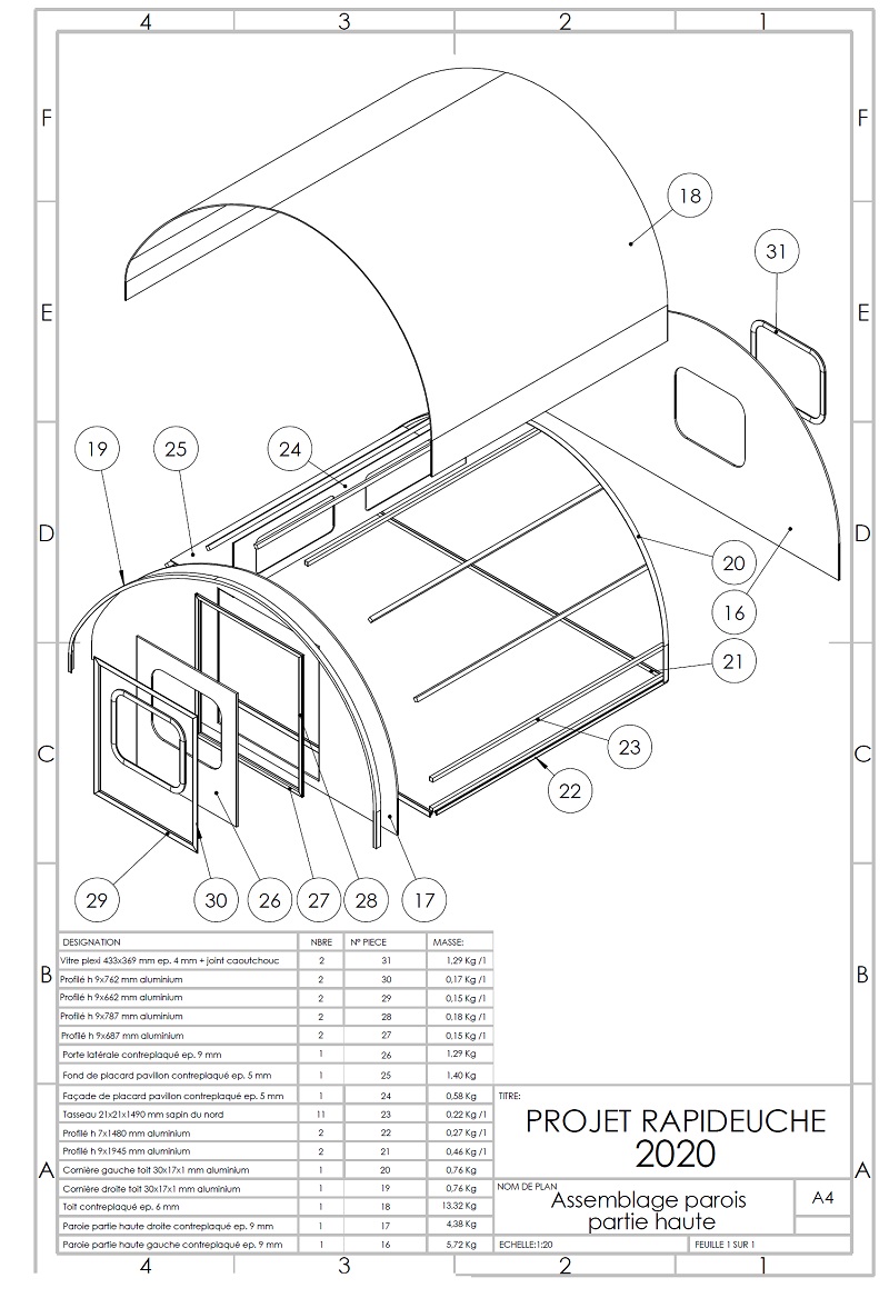 La représentation graphique de la partie aménagement, parois hautes et toit sort à 45 Kg sur l'ordinateur.