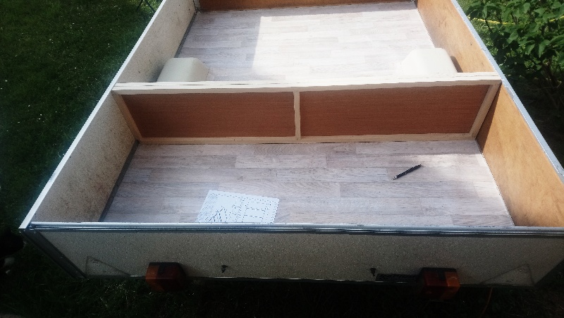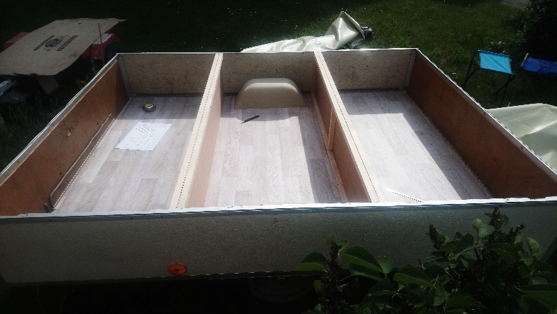 Ensuite j'Y ai collé le lino sur le plancher histoire d'avoir une surface propre pour entreposer les bagages futurs.