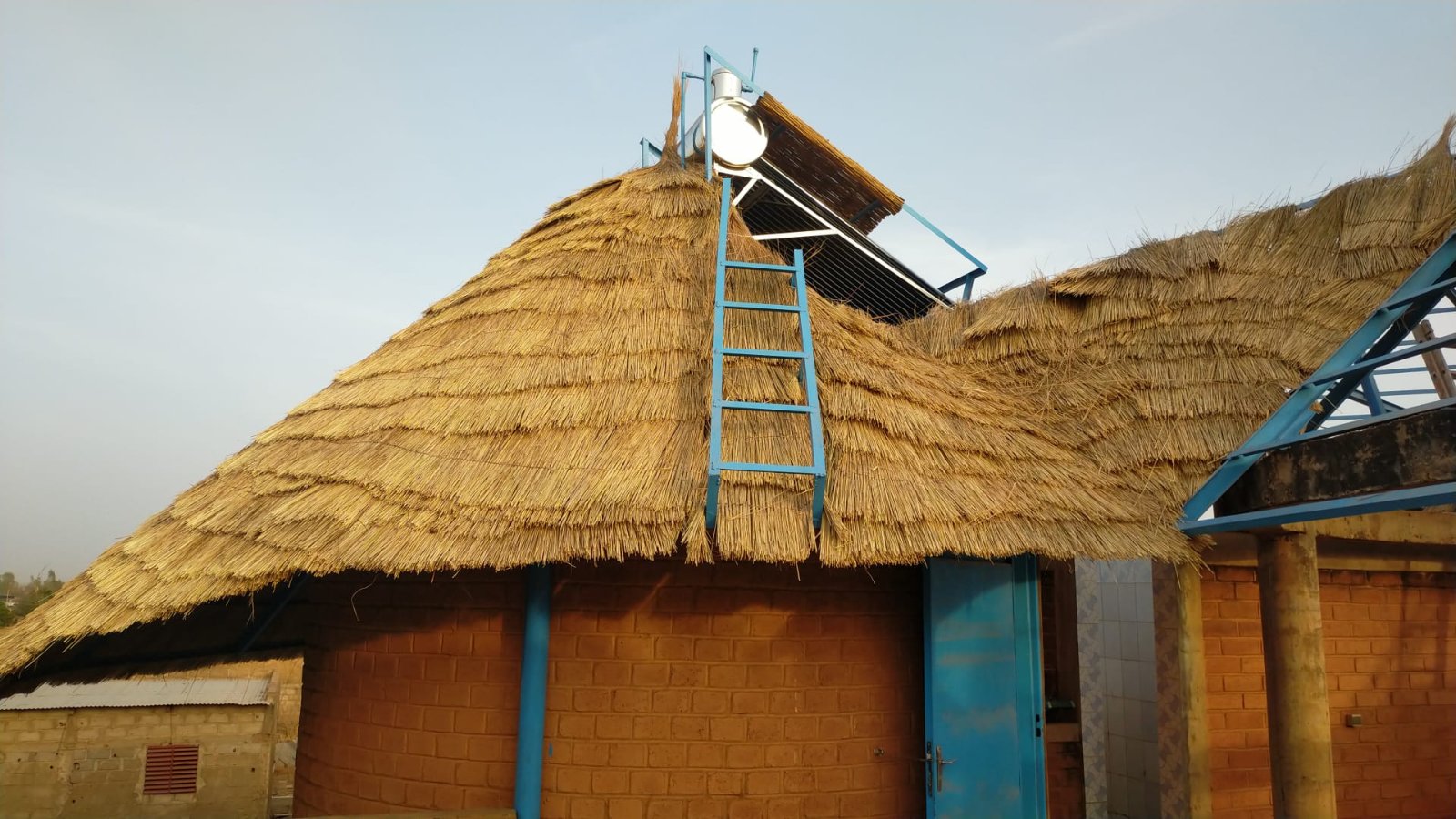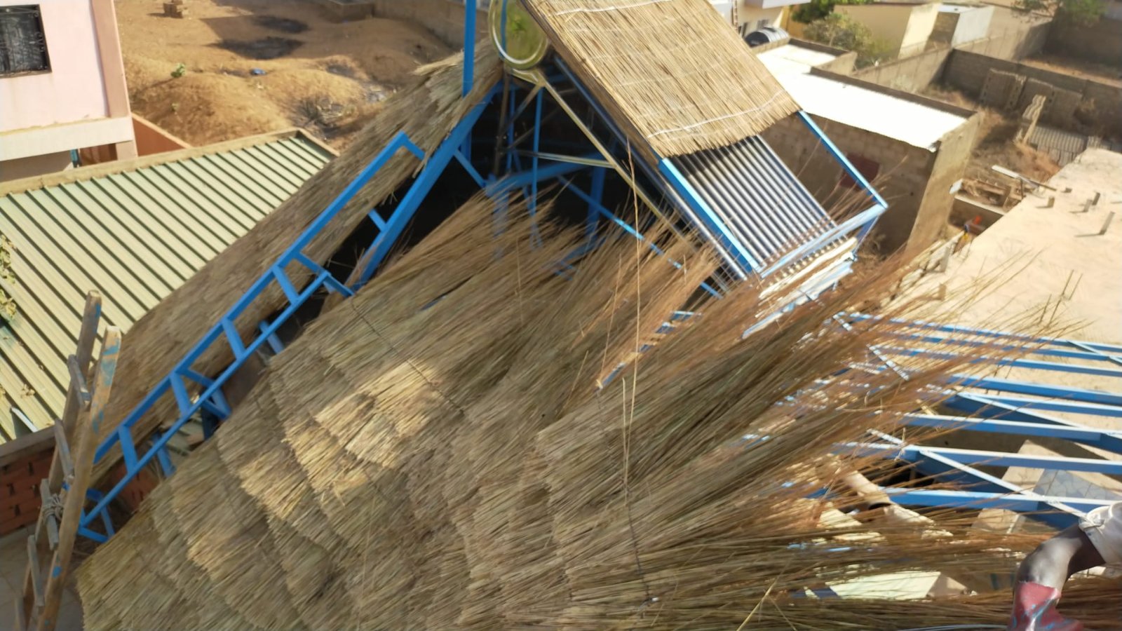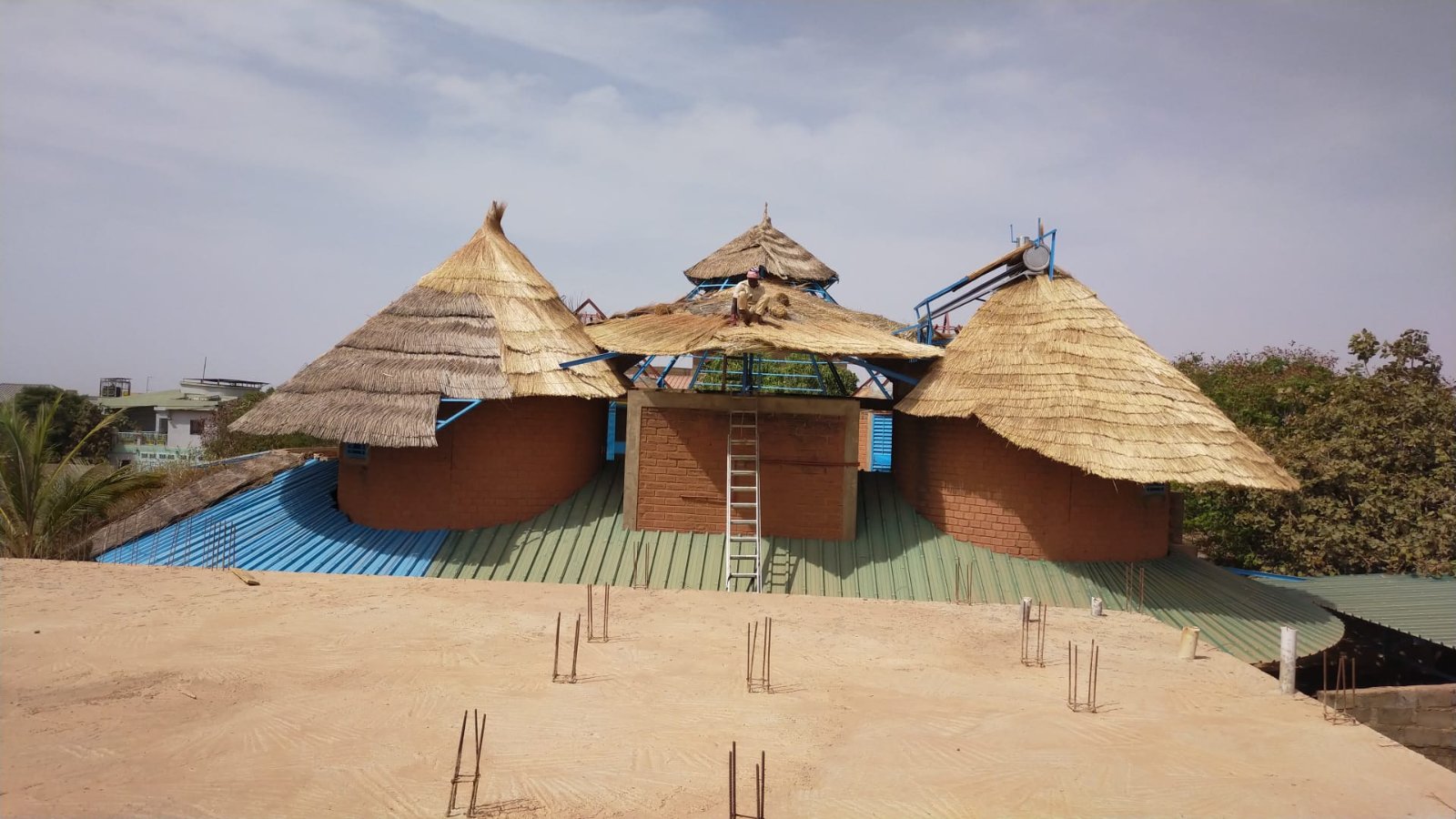 Il me reste une semaine pour couvrir la paillotte centrale. sachant qu'il me reste à souder quelques cornière au niveau des portes des 2 dernière cases.