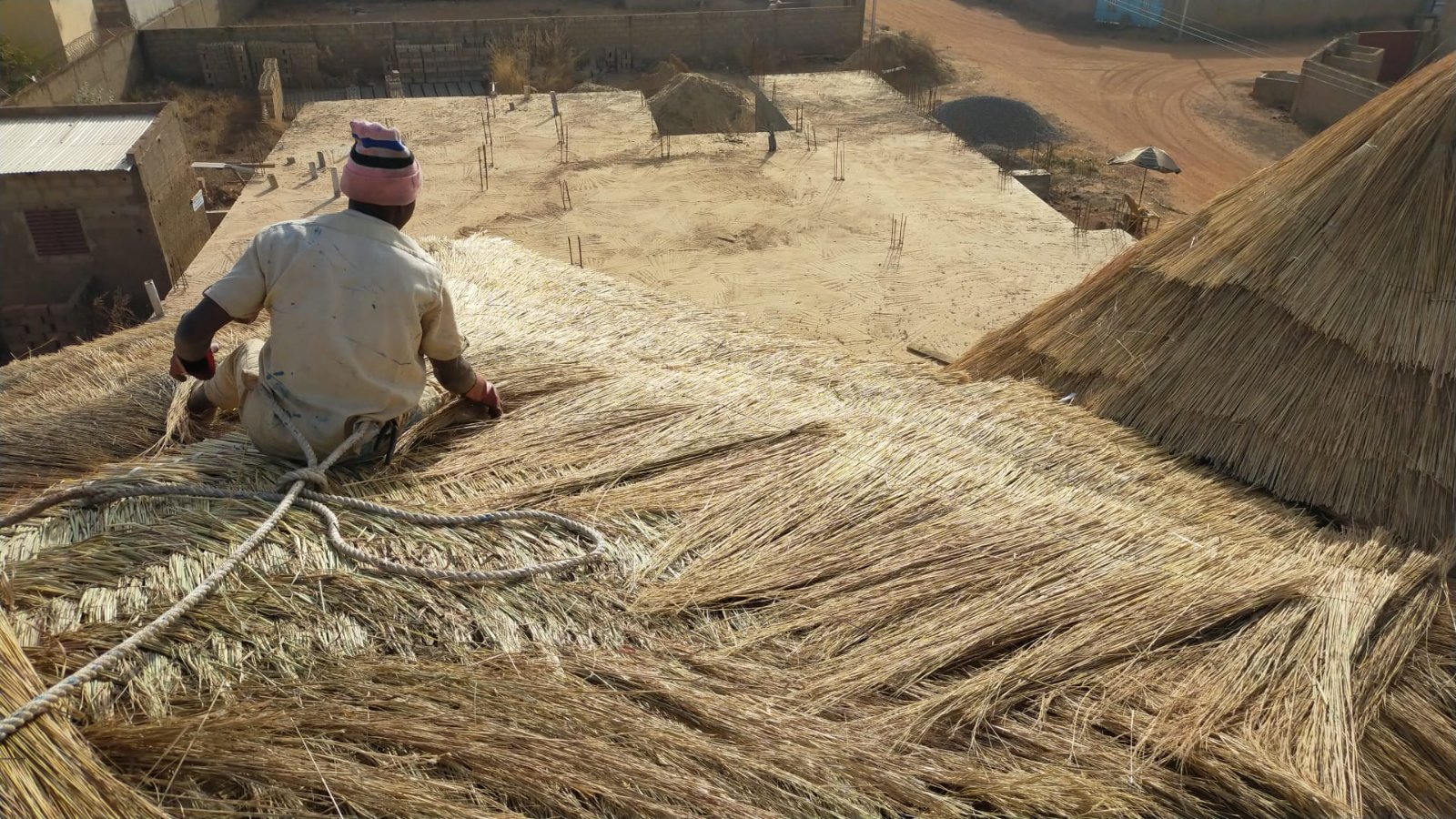 Ce matin, on s'est remis au travail sur la paillotte: