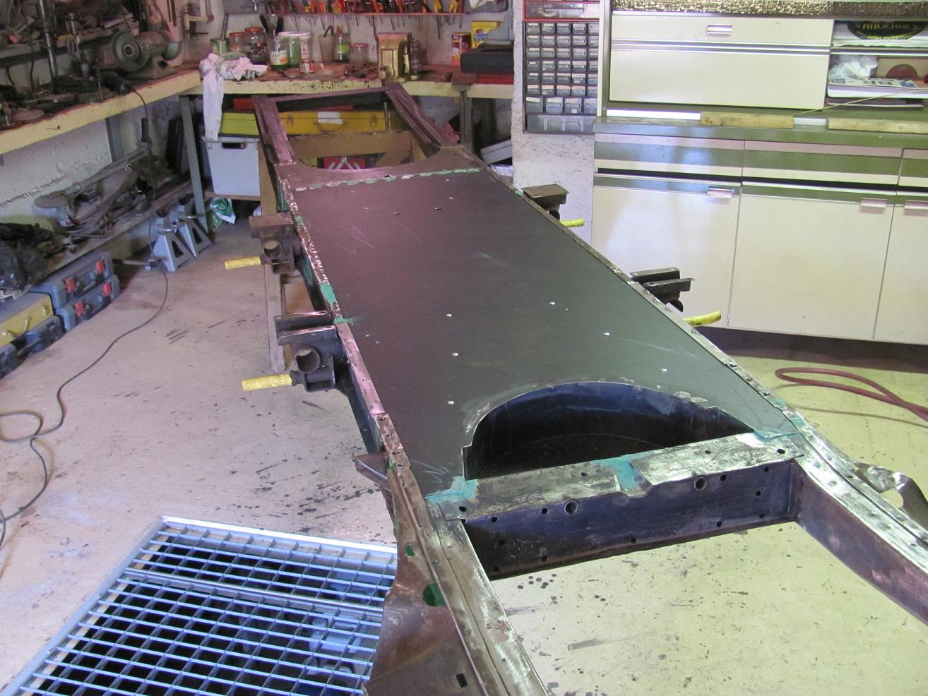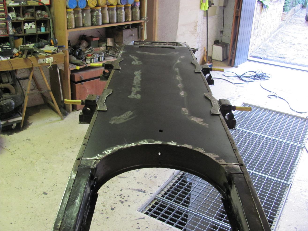 Dans l'avancement de mes travaux j'en suis à la pose des tôles dessous et dessus.