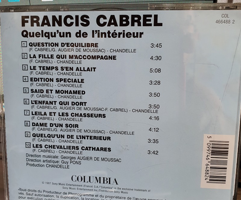 Il va falloir que je revois mes classiques ... Ce titre de Cabrel ne me dit rien