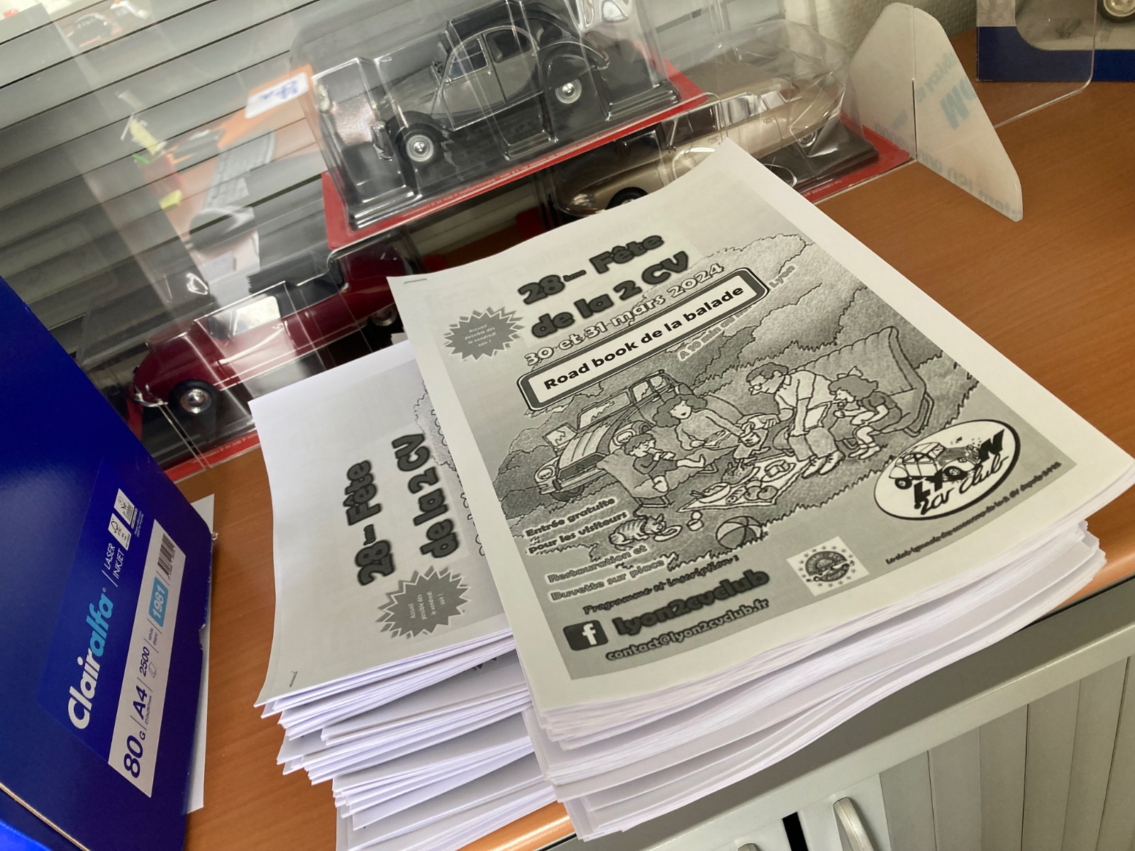 Dans tous les cas, la banderole est en place depuis vendredi, et j’ai pu imprimer tous les roadbook (ou itinéraires selon vos obédiences) hier au bureau. Nous en aurons 75 pour le samedi. J’espère que cela suffira. 😉