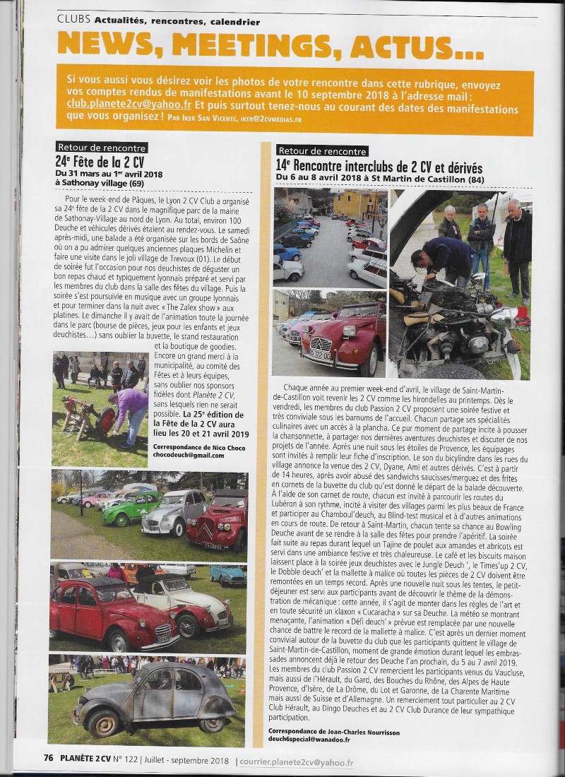 Ce mois ci dans planète 2cv sur la rubrique de "La Veze"