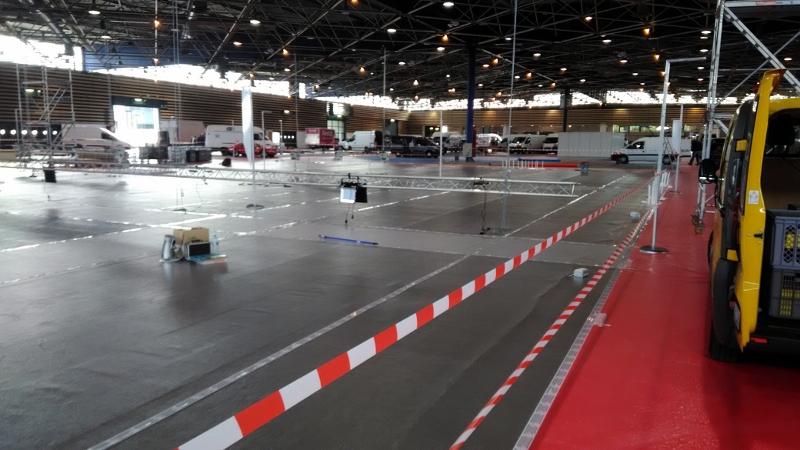 Les portes étant ouvertes je m'aventure à l'intérieur en attendant l'arrivée du troupeau... Difficile de penser que je suis à un salon Epoqu'auto...pour le moment c'est des banderoles et des fourgons récents...