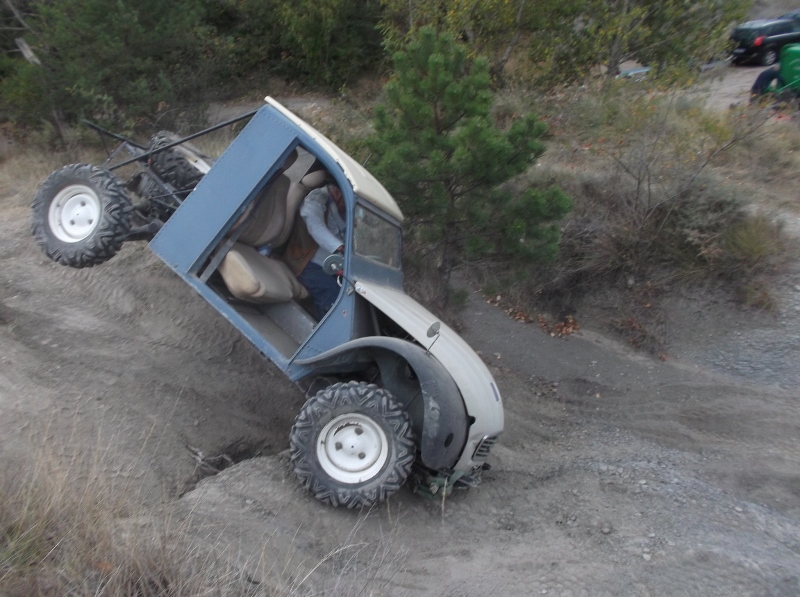 Elle rattrape le buggy qui joue de la balançoire sur une bute...mais l'entraide arrive avec "2CV Assistance" ! lol!