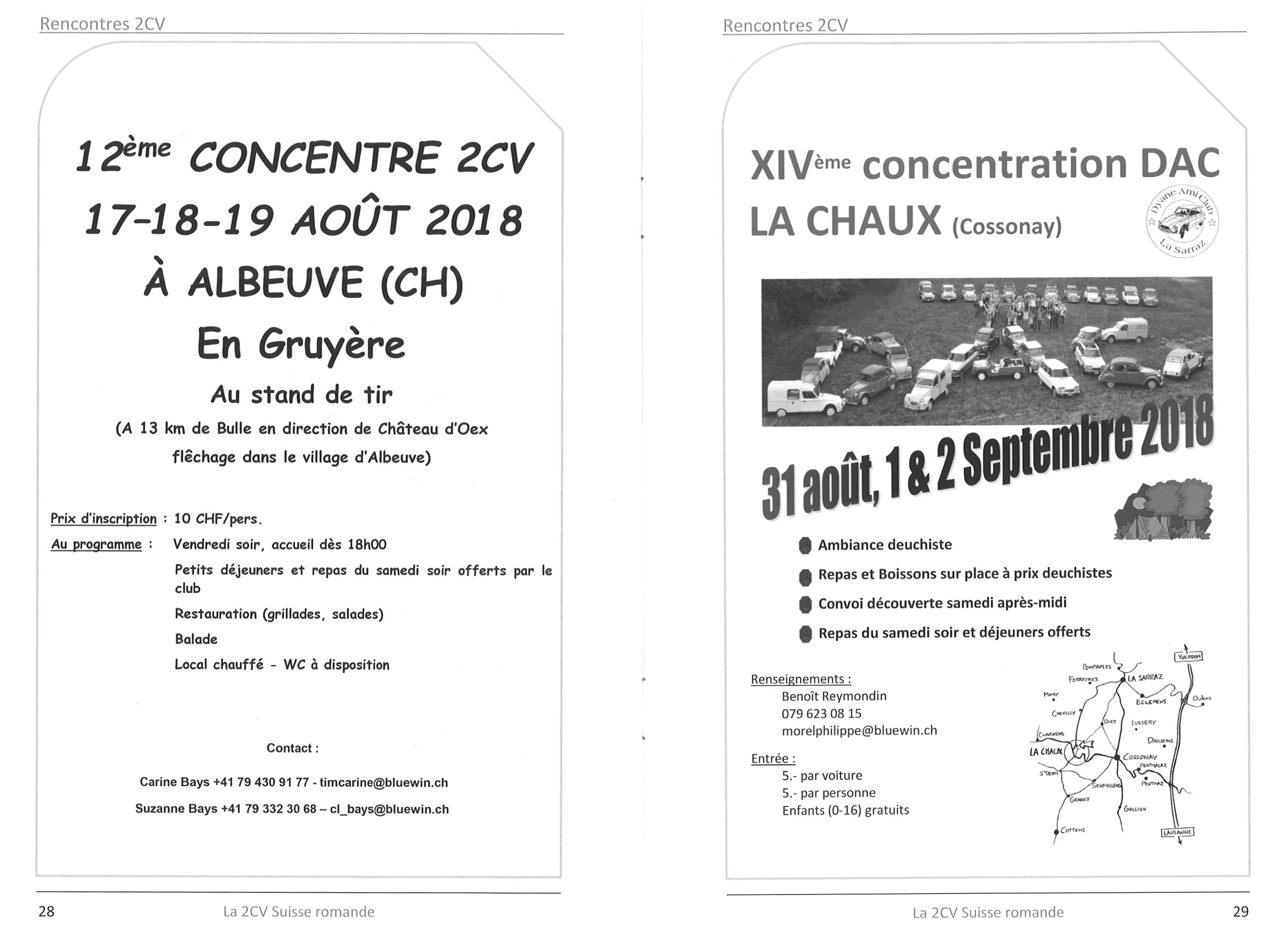 Voilà les flyers de la concentre à Albeuve et à la Chaux de Cossonay organisées par nos amis suisses, respectivement les