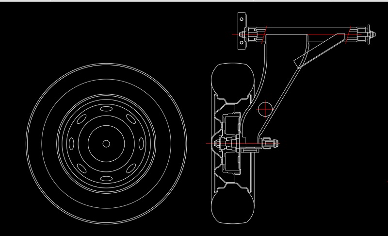 Une évolution ici où je crée ainsi une grande ouverture arrière de la forme de la porte de malle. Une roue de secours sur la face AV. Même le dispositif de freinage est imaginé en reprenant un maitre-cylindre de Deuche actionné via une came reliée elle-même à la tête d'attelage coulissante dans un fourreau équipé de rondelles ressorts type "Belleville"