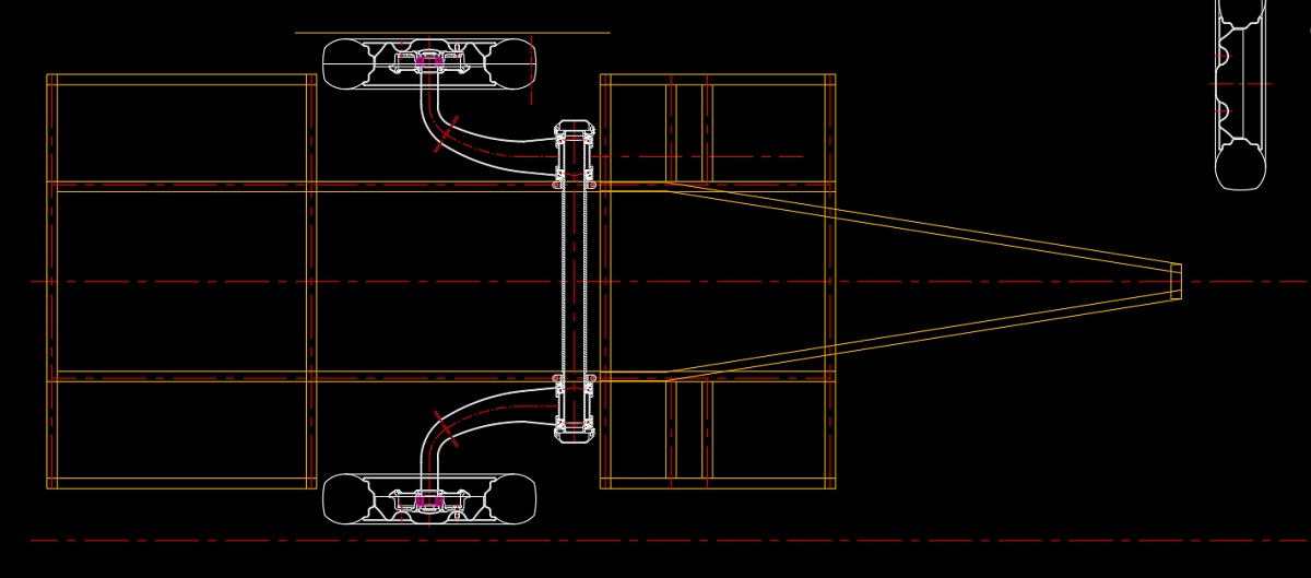 Mon père étant dessinateur industriel, je m'intéresse au dessin et passe des heures, que dis-je, des journées complètes rivé sur l'ordinateur à créer des solutions sur un logiciel de dessin. Malgré son incompréhension face à mon projet, il m'aide un peu notamment sur les solutions techniques et sur le calcul de résistance des matériaux... Pour le châssis mécano soudé par exemple.