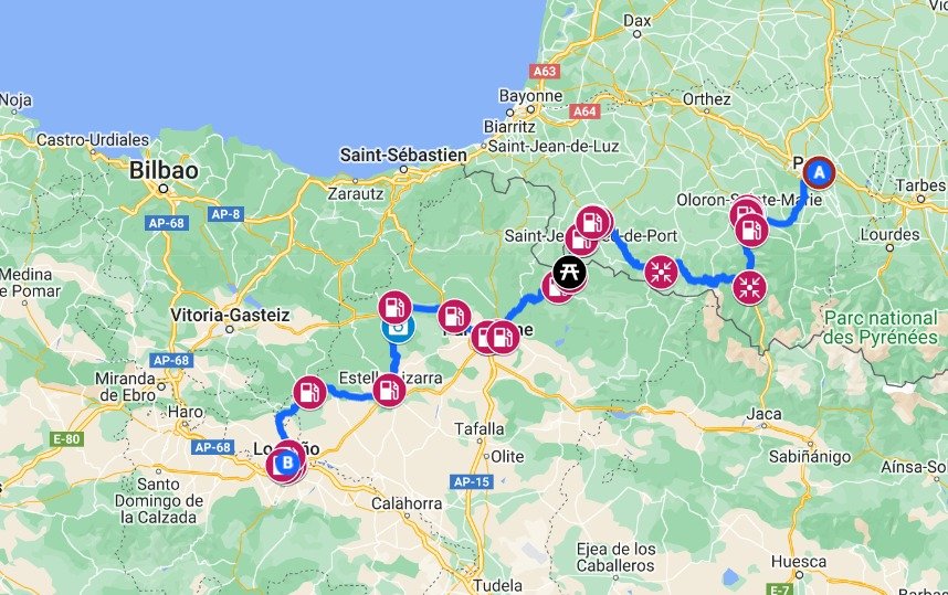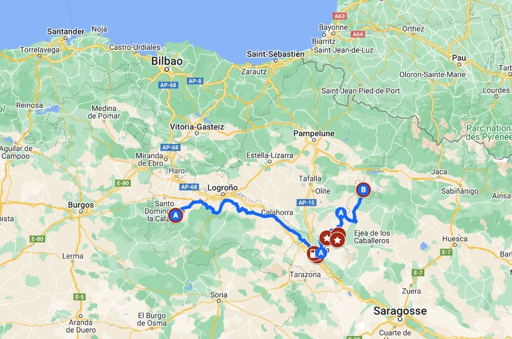 Hier nous avons fait plus de 300 km de Pau à Logroño en passant par le Col de Roncevaux. (nous n'avons pas vu Roland 😉