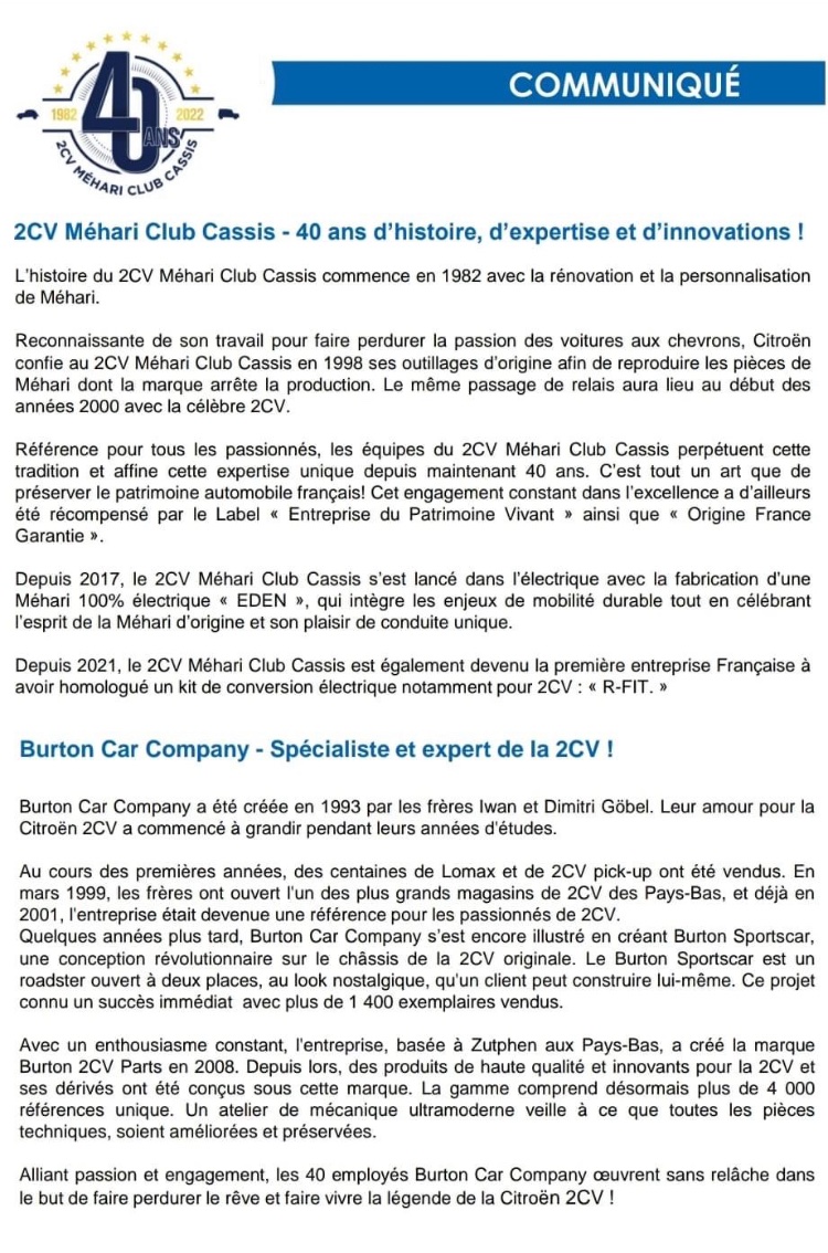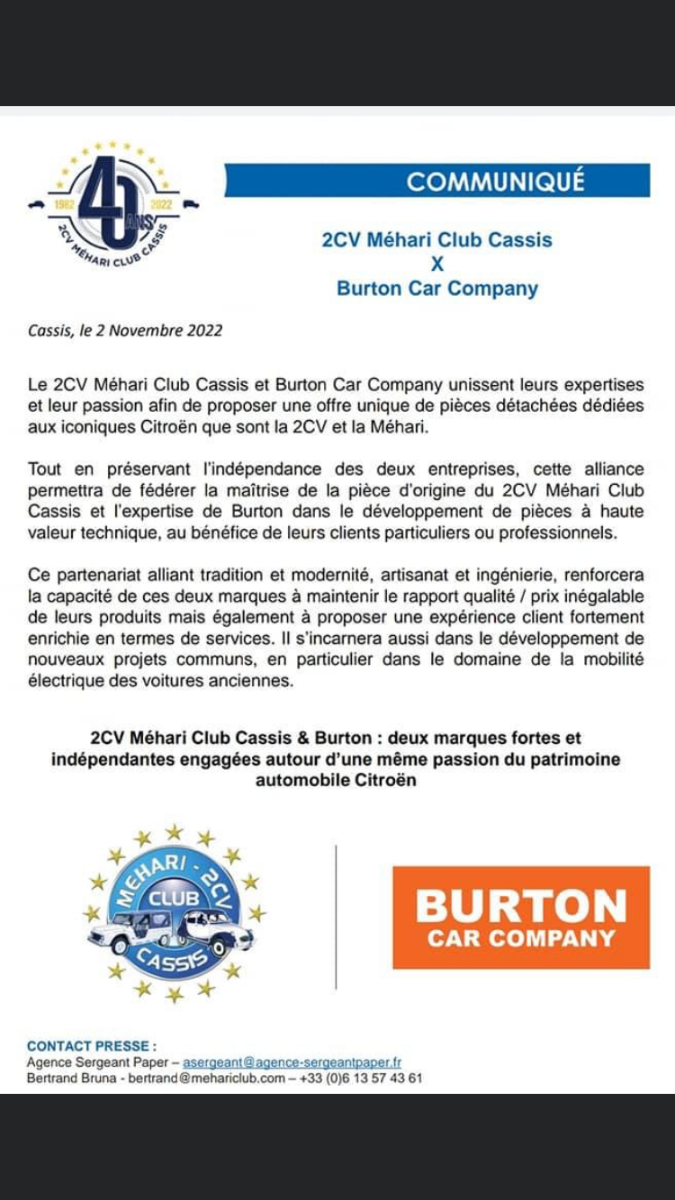 J'ai eu l'info par le groupe WhatsApp des 2CV kit cars... donc très proche de Burton.