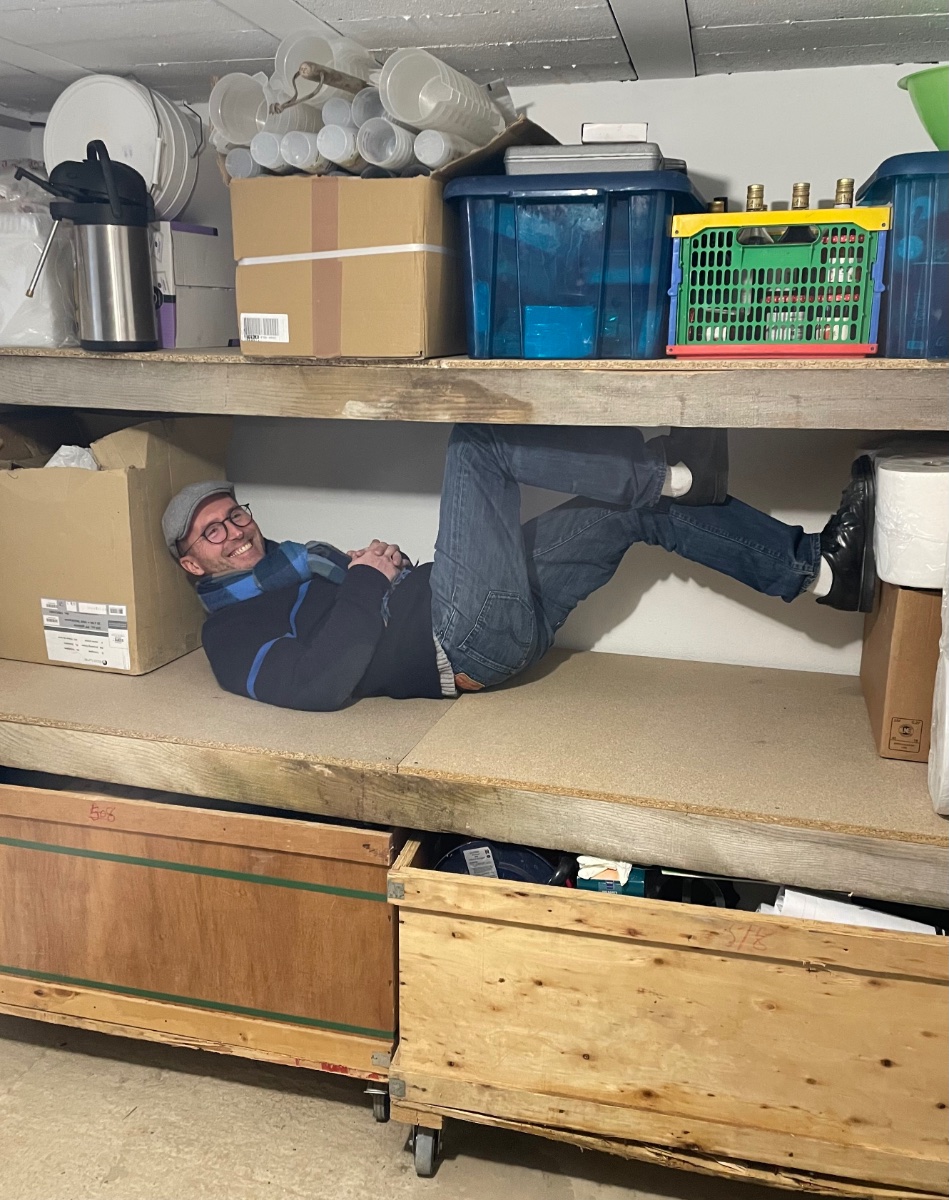 Nous en avons profité pour descendre les caisses à roulettes ce qui nous a permis de nous confronter à leur taille dans le local.
