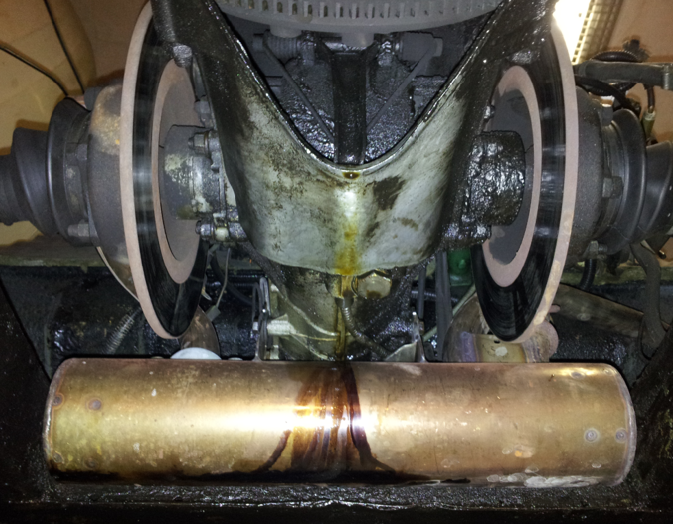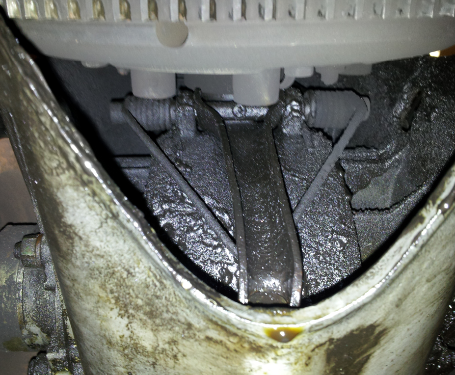 par contre il y avait une fuite au bas de la pompe à huile. avec la vis du bas pas bloquée. et le joint torique bien "carré". donc c'est probablement la cause de la fuite derrière le moteur.