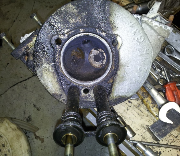 Après ouverture, les culasses sont bien encrassée, mais les soupapes ne sont pas enfoncé.