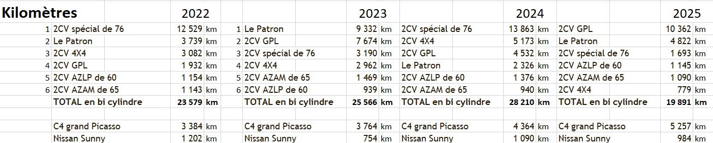 Au kilomètres parcourus sur l'année en bicylindres au sein du Lyon 2CV Club je pense que l'on peut te décerné le Patron d'Or
