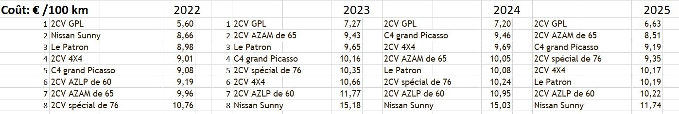 On voit bien l'effet de l'augmentation du prix de l'essence entre 2022 et 2023: + 1.5 € pour 100 km.