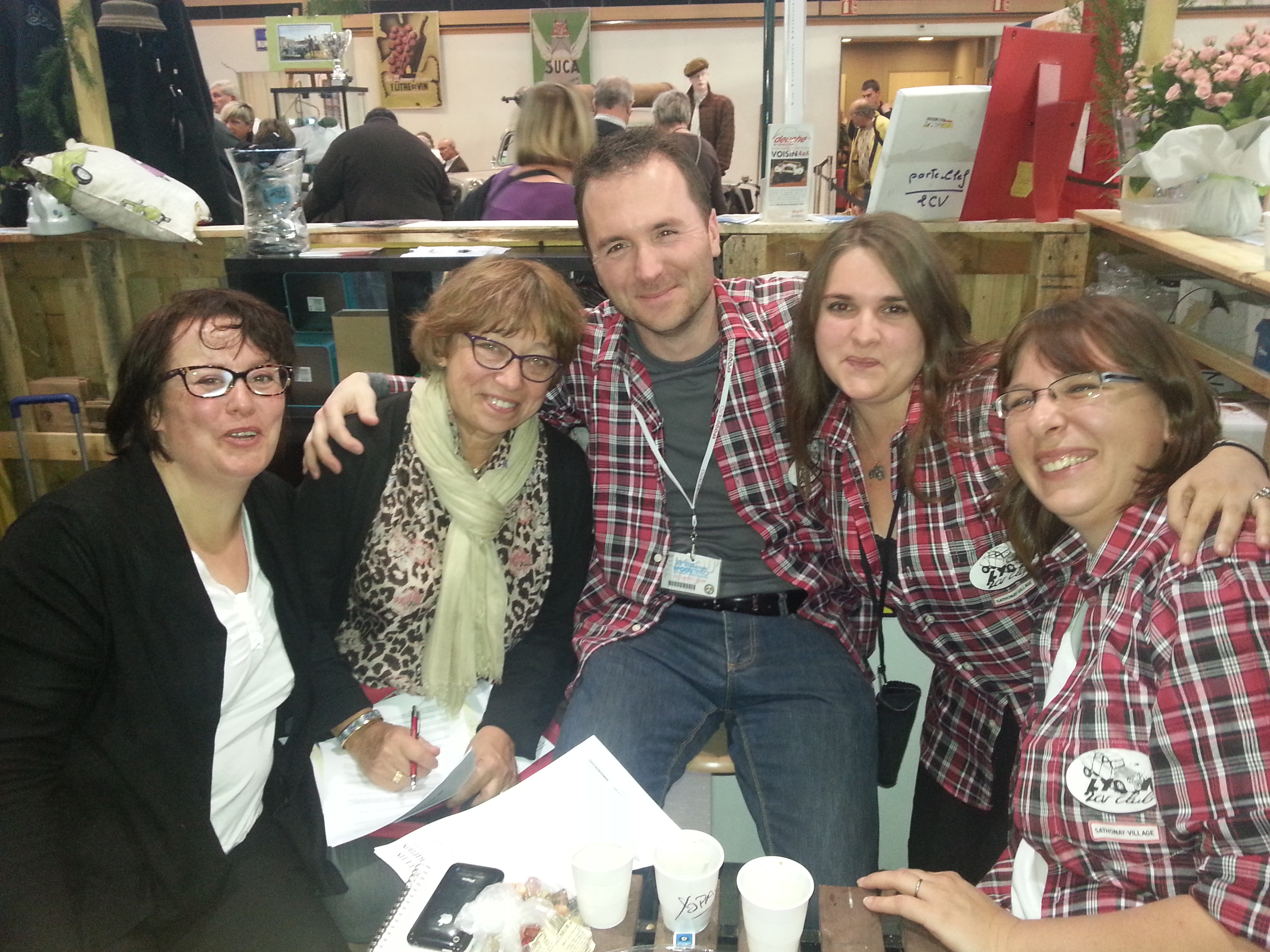 de gauche à droite : Marie Claire Bonnet, pdte du 2 CV Club Dauphinois, Muriel Bocquenet, épouse de Marc, votre serviteur, accompagné de Pris et de la Suisse.