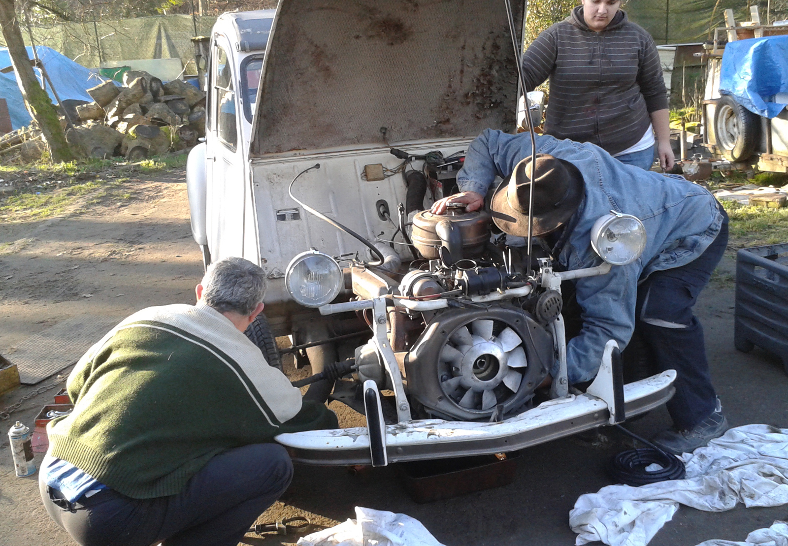 Voila ce qui arrive quand on achète du Marchmal!Mouloud a écrit :...nous avons fait la révision de la deuche à Marie avec montage (éphémère, d'accord ) d'un allumage électro -niqué, dirais-je..........![]()