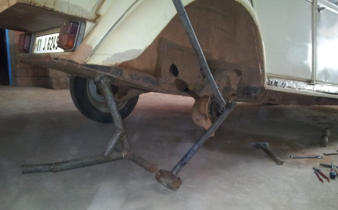 Après le changement de bras droit, la 2CV était prête pour les travaux de la maison et le voyage que nous avons fait à Bobo: