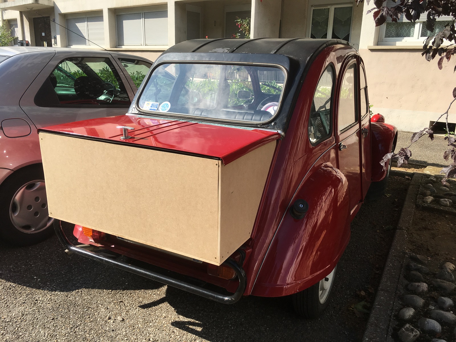 À mon avis , ce doit être un candidats à la Nationaz, il a les stotocollants" Hell's en Deuch" ,en tout cas c'est un rêveur, car construire une malle en bois en Haute Saintonge ! !!!!!