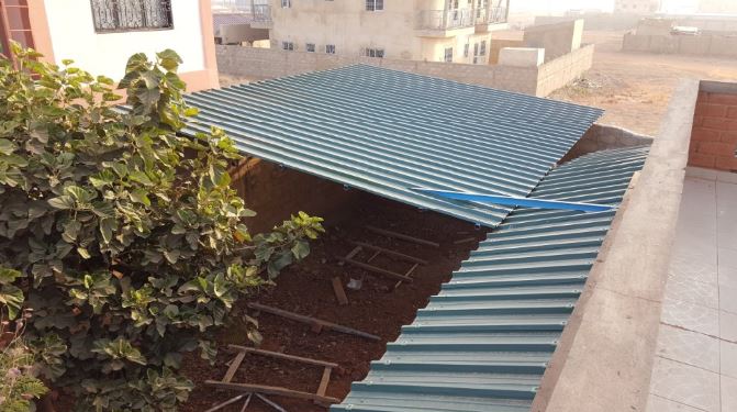 On peut voir les tôles stockée pour finir le garage.