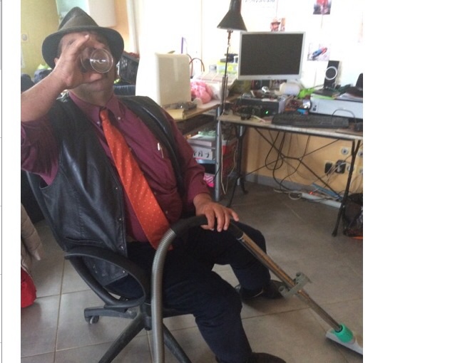 tout va de travers en ce moment car en plus d'arborer fièrement sa cravate citroneault je crois bien que nôtre dédé a été pris en flagrant délit de passage d'aspirateur .
