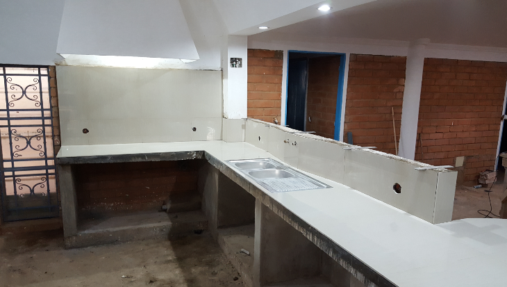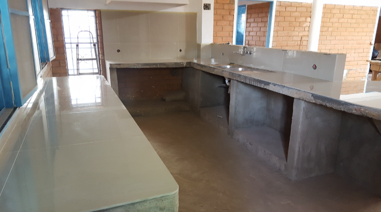 Le carrelage est maintenant fini, il reste encore les joints et la découpe du cercle de la table.