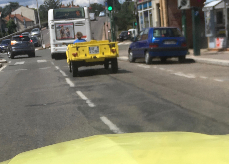 et là c'est un kiki suivi par une baignoire jaune et une 2 cv jaune , un vrai convoi