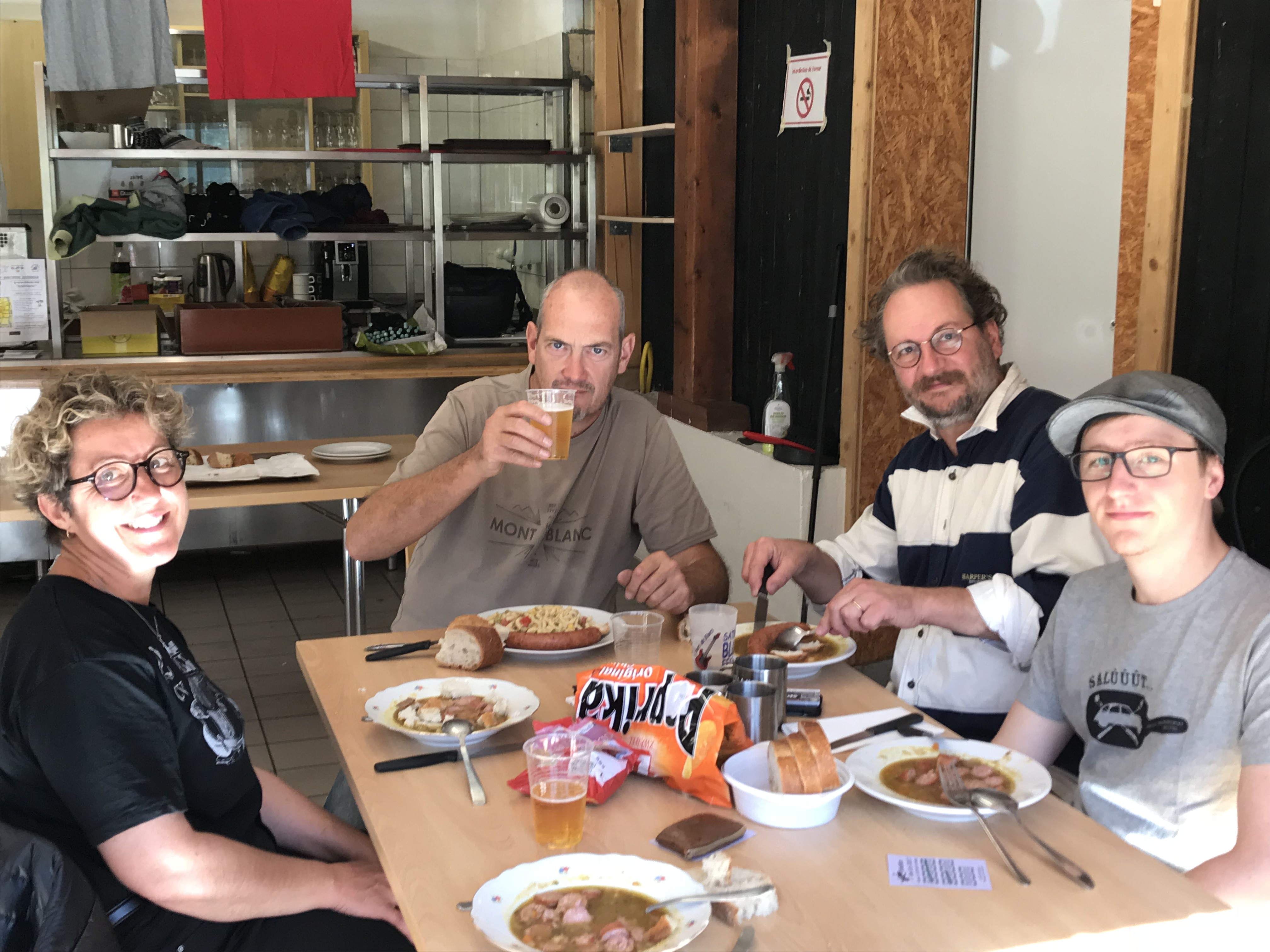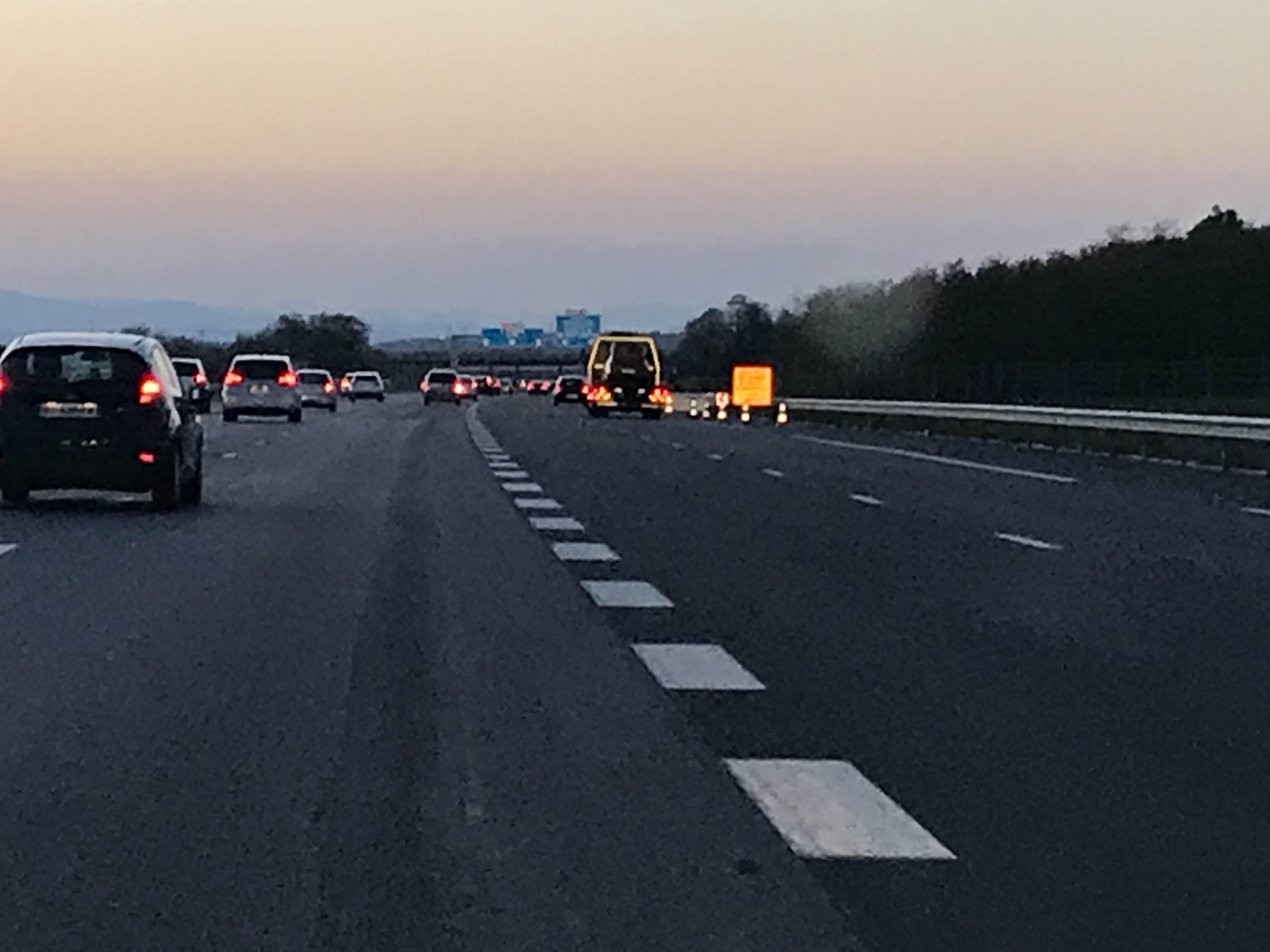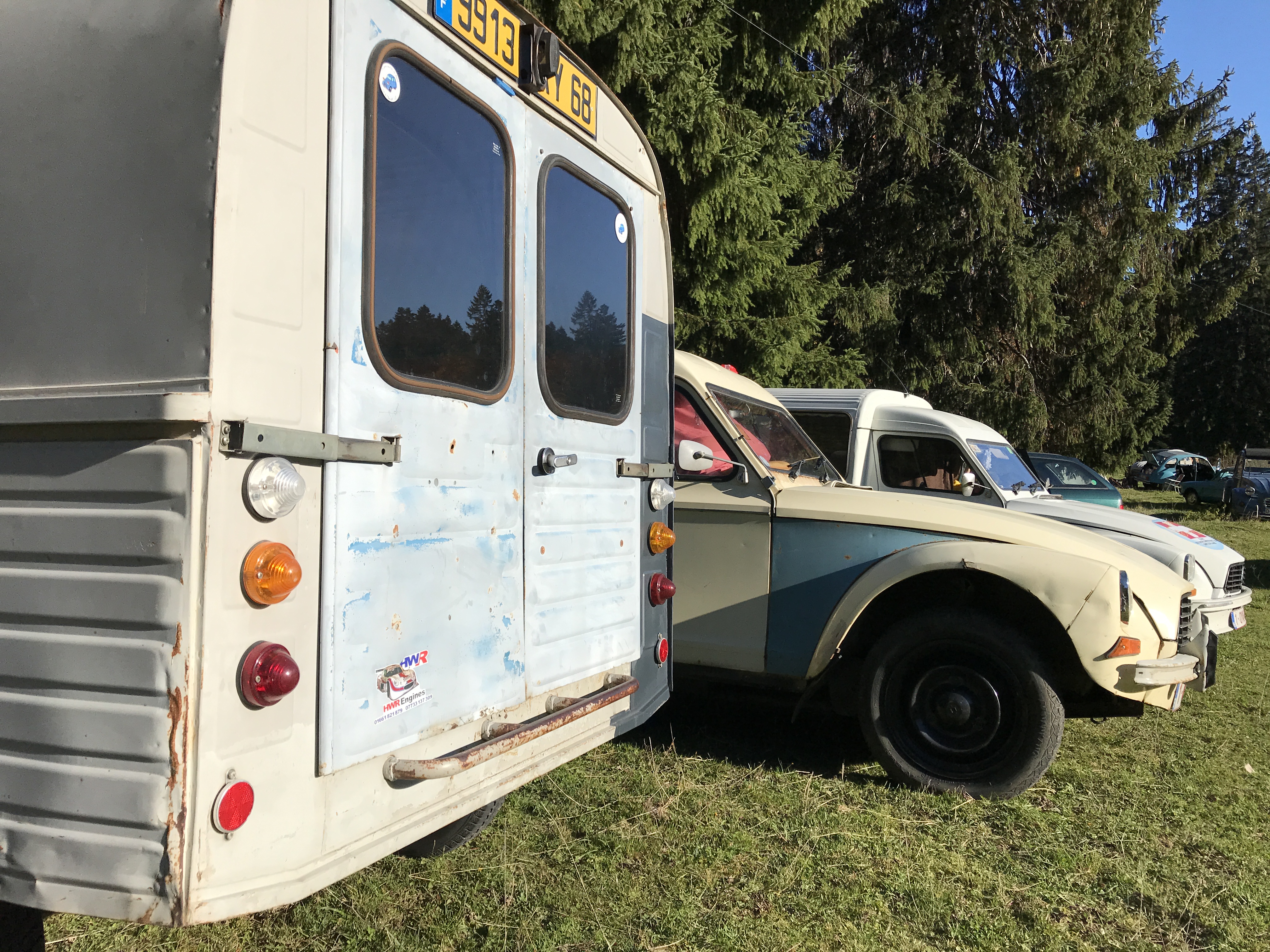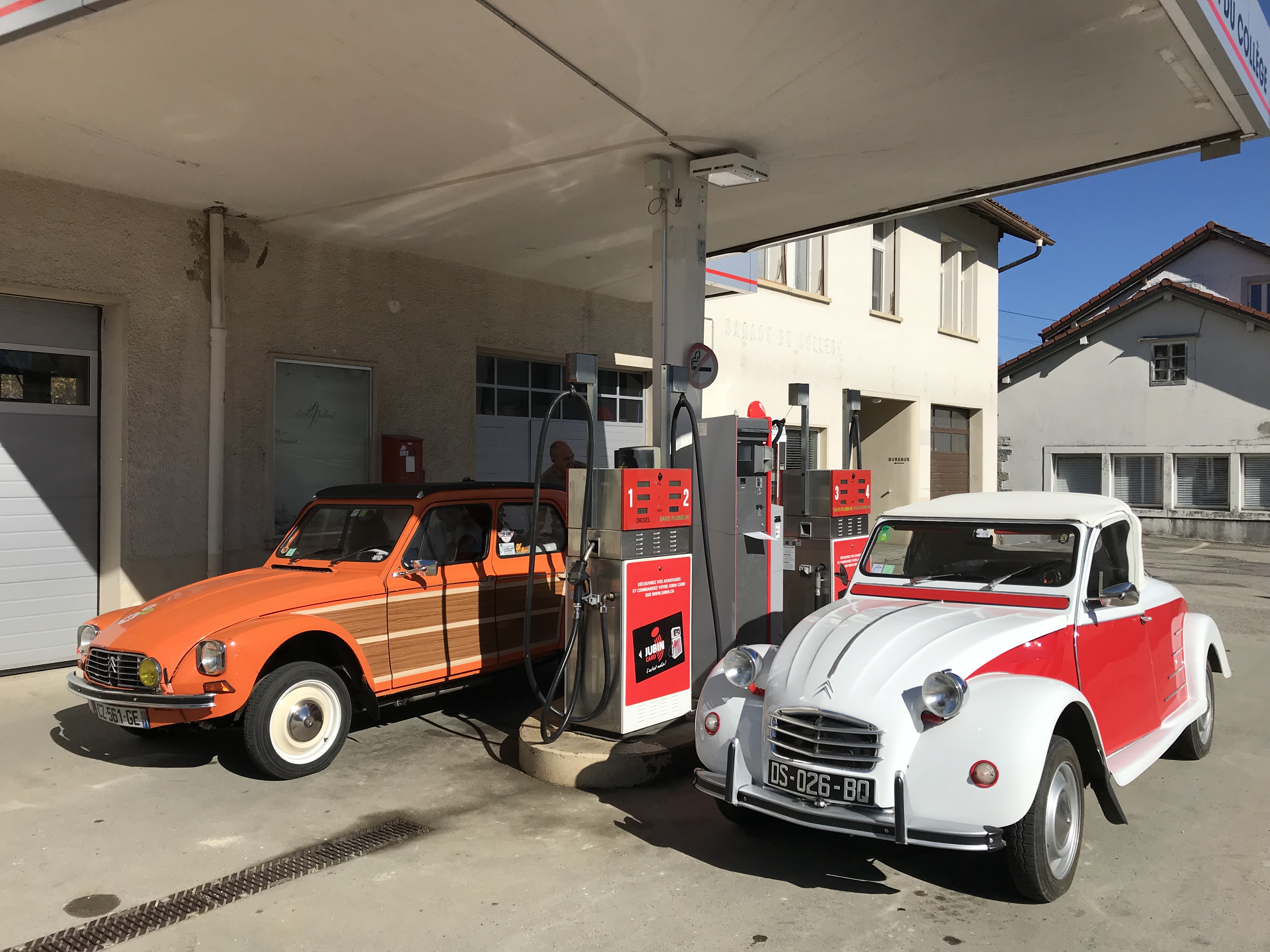 Panne d'alternateur, cela a commencé en Suisse, avec les phares qui ne fonctionnaient plus, pas de jauge à essence, démarrage aux pinces à la première station en France une fois la frontière franchie. La Dyane à calé au péage, un motard nous as aidé à pousser, les gars du péage super efficaces, on bloqués la voie de télépéage à notre droite le temps que nous redemarrions en poussant Gd Phi avec l'aide du motard. Puis quelques mètres et la Dyane s'est mise à ratatouiller, et n'à plus rien voulu savoir.