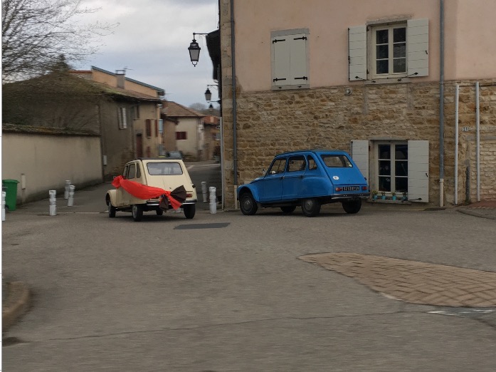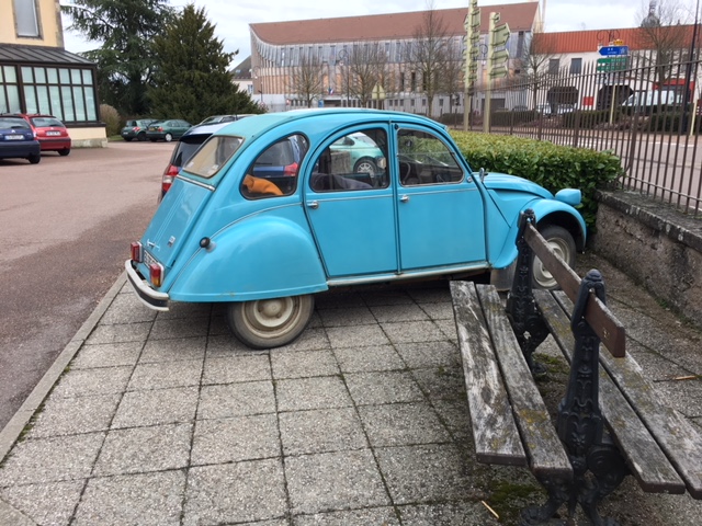 une 2CV dans un garage Renault, on aura tout vu, à Chaource et une autre sur un parking à Saulieu.