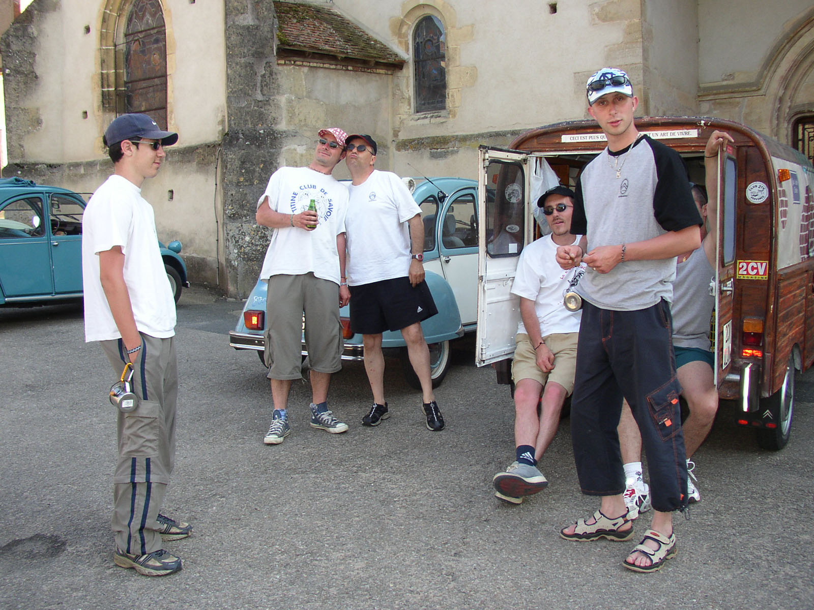 Il s'agit d'une partie de la petite bande du club (dont votre serviteur, sa soeur, son frère, Choco et ...derrière l'appareil... Mouloud, bien sûr !) faisant halte dans les Alpes sur la route de la mondiale (notre 1ere !!) 2003 à Vinadio !