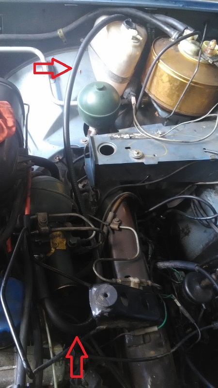 Au retour je me rend compte d'une autre fuite sur l'AV. Un tuyau caoutchouc est coupé à l'échappement du correcteur de hauteur avant...