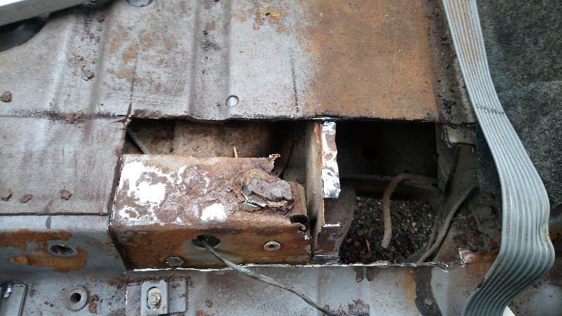 Bref cela pour arriver au plancher de coffre et l'état de décrépitude de la traverse AR. Juxtaposition de plusieurs tôle donnant un parfait logis à une rouille perforante. :[