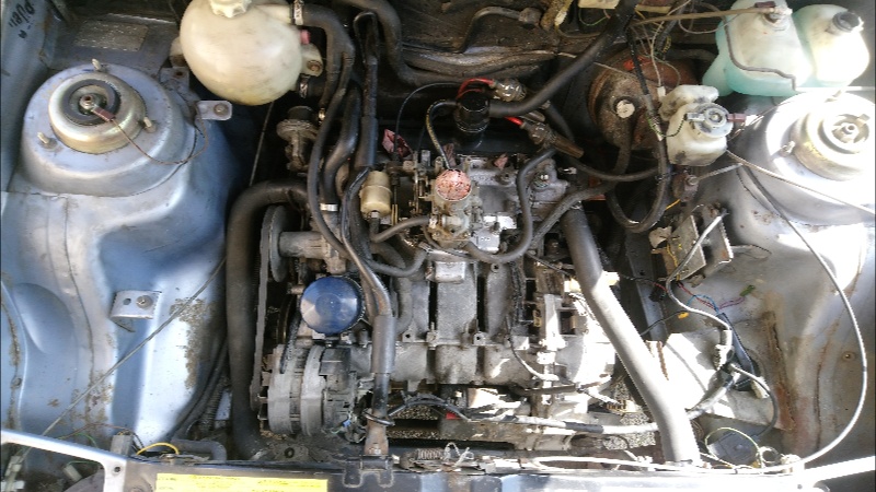 _ Vérification : Il s'agit d'une VISA et pas la plus moche puisque VISA II avec le "restiling" comme disent les habitants outre-Manche. C'est une année modèle (AM) '87... Donc tableau de bord type "C15" et commodos Peugeot. Et v'lan encore un coup de pied dans le style Citroën. Côté moteur ? Que retrouve-t-on ? Et bien comme le vilain jeune homme a déjà une LNA bicylindre, il joue le tout pour le tout et s'attire au passage la rage des Citroënistes pur sang ! Un moteur X Peugeot ! Lequel ? Le 1360 cc type 150D soit 60ch. DIN...le dégonflé de la GT...
