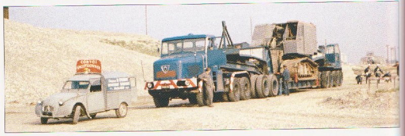 Dommage, on ne voit pas bien la barre de remorquage entre la Deuche et le Berliet TBO ! Sur la photo du centre, le camion est un "Pacific" à essence de l'armée américaine reconverti en porte-char dans le civil. Consommation moyenne : 100 litres à l'heure !