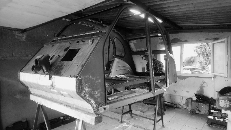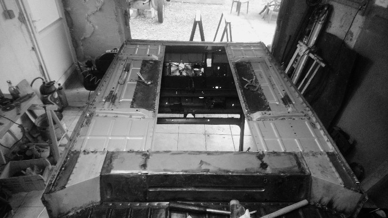S'en est suivi le soudage de ceux-ci le long des bas de caisse à la pointeuse et au MIG pour les deux arêtes en largeur.