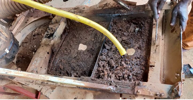 Comme je n'ai amené aucun outils pour démonter la crémaillère, je vais me faire aider par un "garagiste" 2cv qui a toutes les méthodes locales pour démonter.