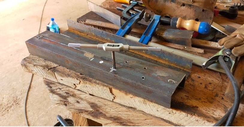 par sécurité, j'ai préférer souder les écrous d'origines dessous la travers, pour ne pas compter que sur mes taraudages sur une épaisseur finalement assez faible: