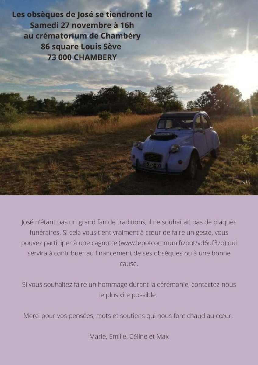 Dans l'immédiat, envoyons nos plus belles pensées et de la lumière à Marie et aux filles de José, elles en ont besoin.