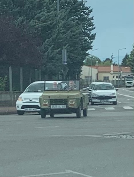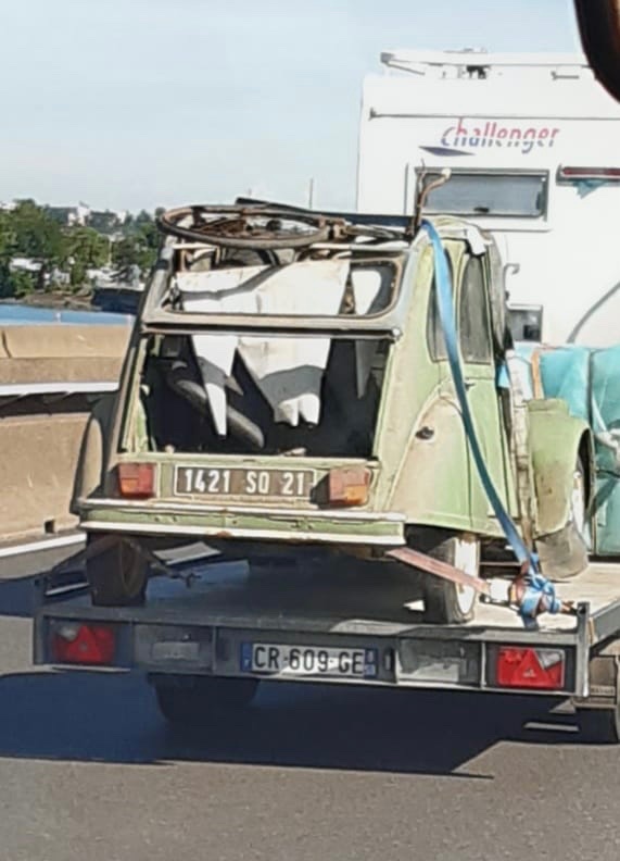 Vu hier à la sortie de Limas en direction de Anse, un peu avant le panneau de fin de commune, une 2cv camionnette sans la caisse on dirait en attente d'une caisse bois ou autre !
