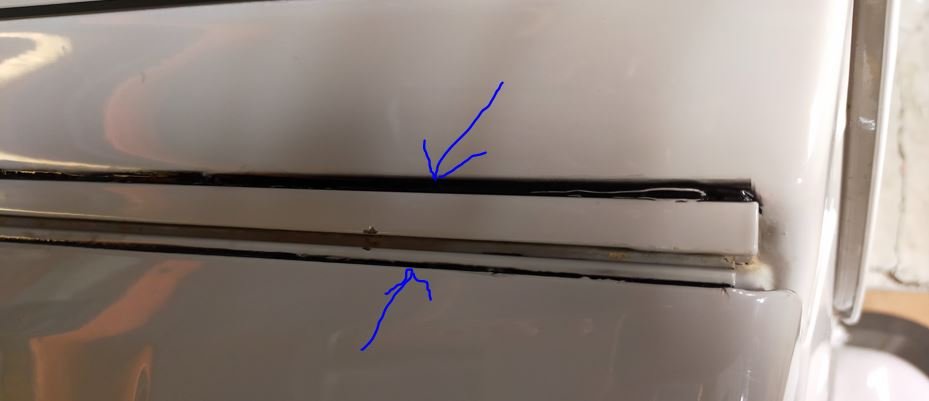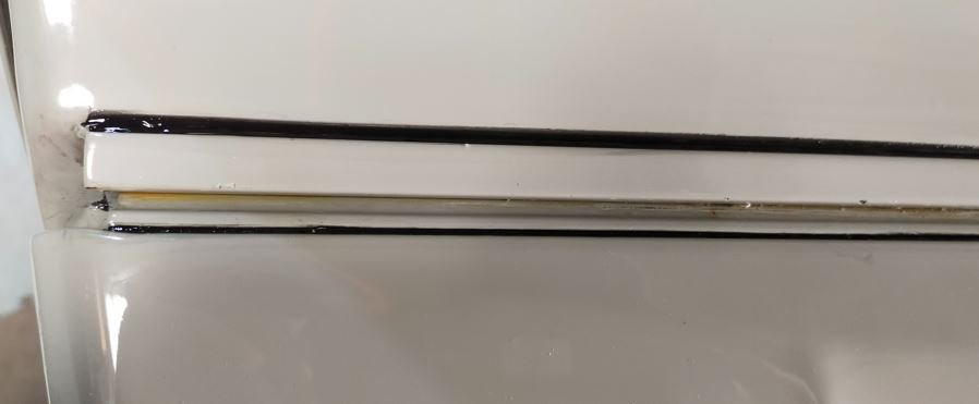 Hier, j'ai mis du férose dans les fentes des charnières de capot, et ce matin j'ai fait le joint noir en silicone pour avoir une bonne étanchéité comme à l'origine.