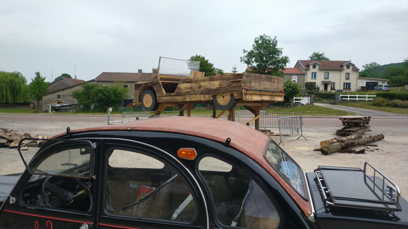 Une méhari en bois échelle 2 à l'entré de Remoncourt