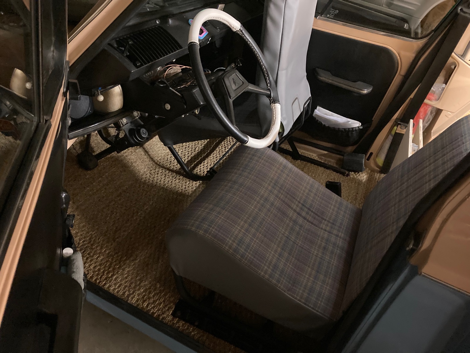 Pose de tapis en jonc de mer à l’arrière et à l’avant de la voiture.