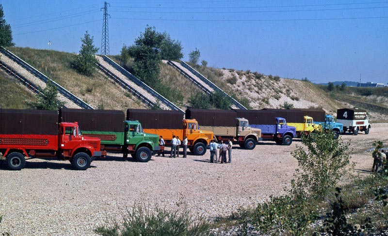 Il s'agit de la flotte des camions Berliet au complet (camions des sables) pour le pour le Raid Afrique en 1973.