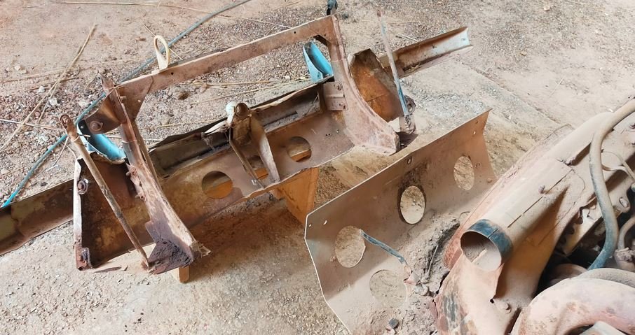 La traverse avant est complètement rouillée. l'eau s'est accumulé avec la tôle de protection. il faudra prévoir des évacuation d'eau.