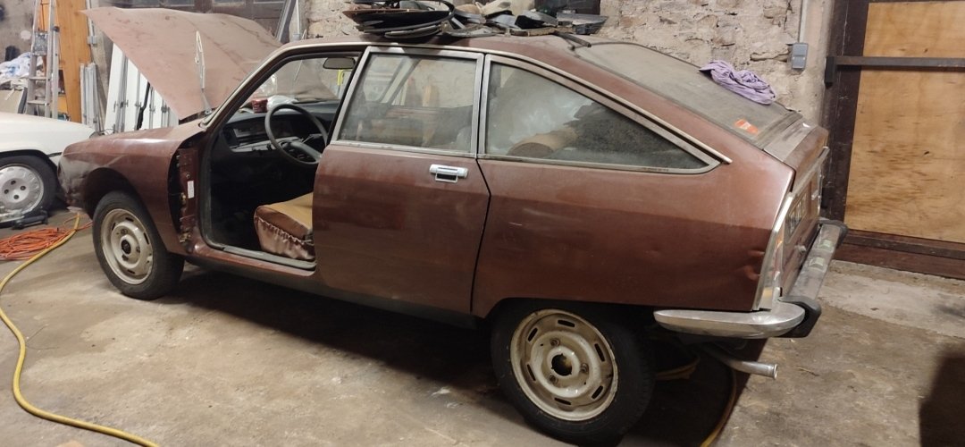 Le dessous des planchers est maintenant traité et recouvert d'une fine couche d'anti-gravillons pour lui rendre une couleur homogène, enfin à peu près ! La ligne d'échappement neuve a donc pu être posée. Je passe sur la facilité des opérations quant à remonter une ligne d'échappement sur une GS, sans pont élévateur... Le Y sous boîte, je le maudis.