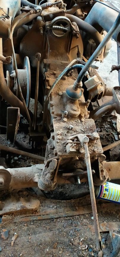 vue de la boite avant. je pense qu'il est nécessaire de déposer le moteur et la boite du châssis.