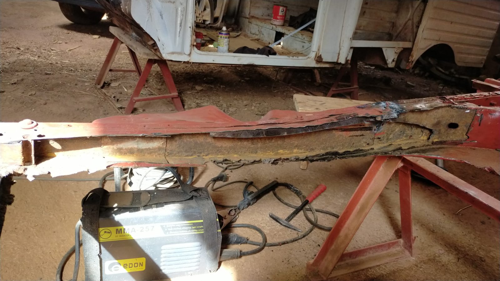 Petite soudure de la fissure pour rigidifier la côté droit