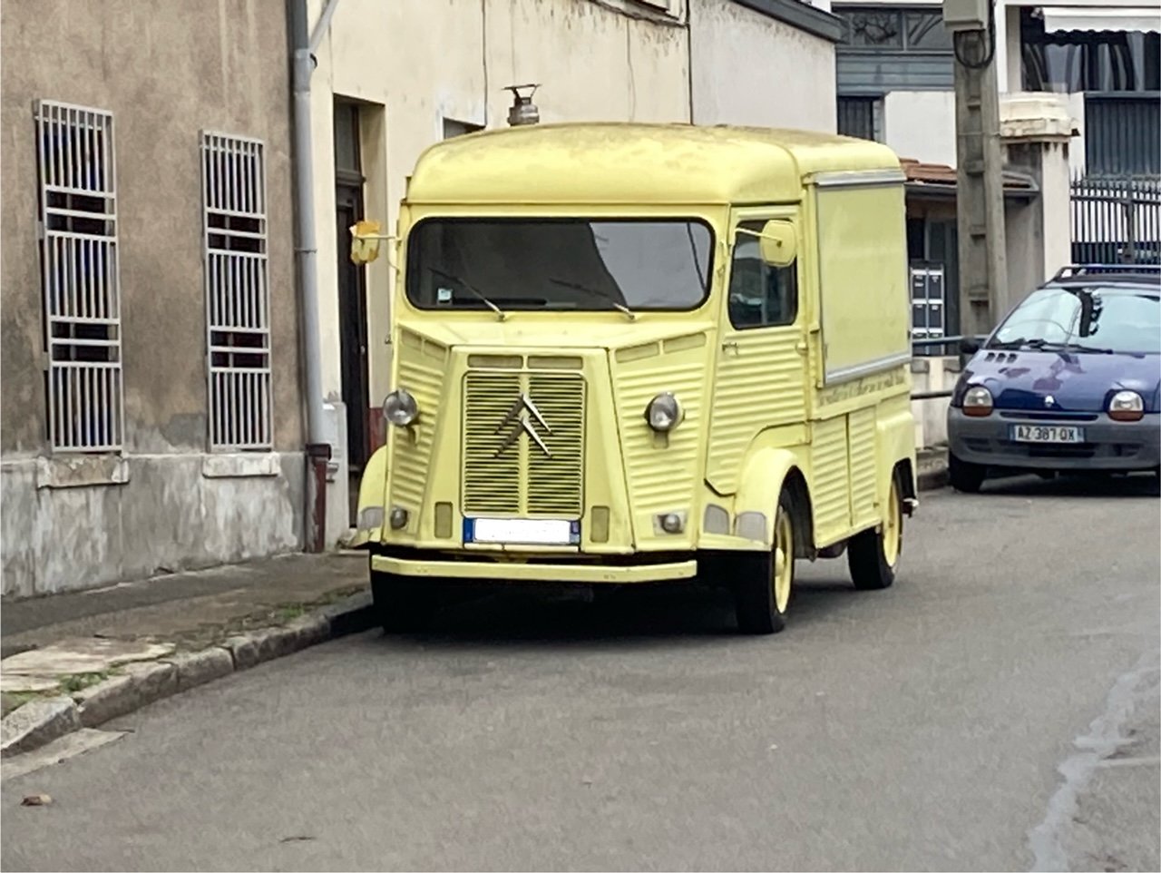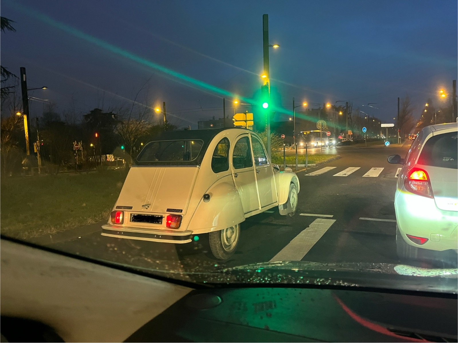 Une 2cv verte qui arrivait en face de moi ! Je la reconnais, elle est de la série sauste ente !